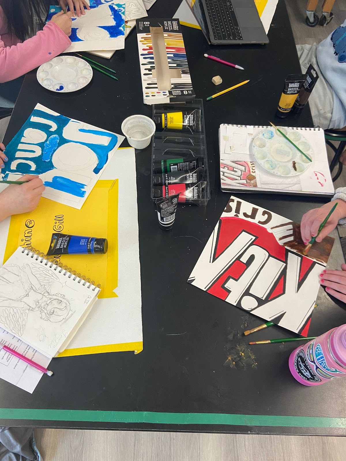 And finally 8th grade is working on their Candy Viewing Project where they are painting an accurate and zoomed in candy logo inspired by Pop Artists James Rosenquist and Andy Warhol.