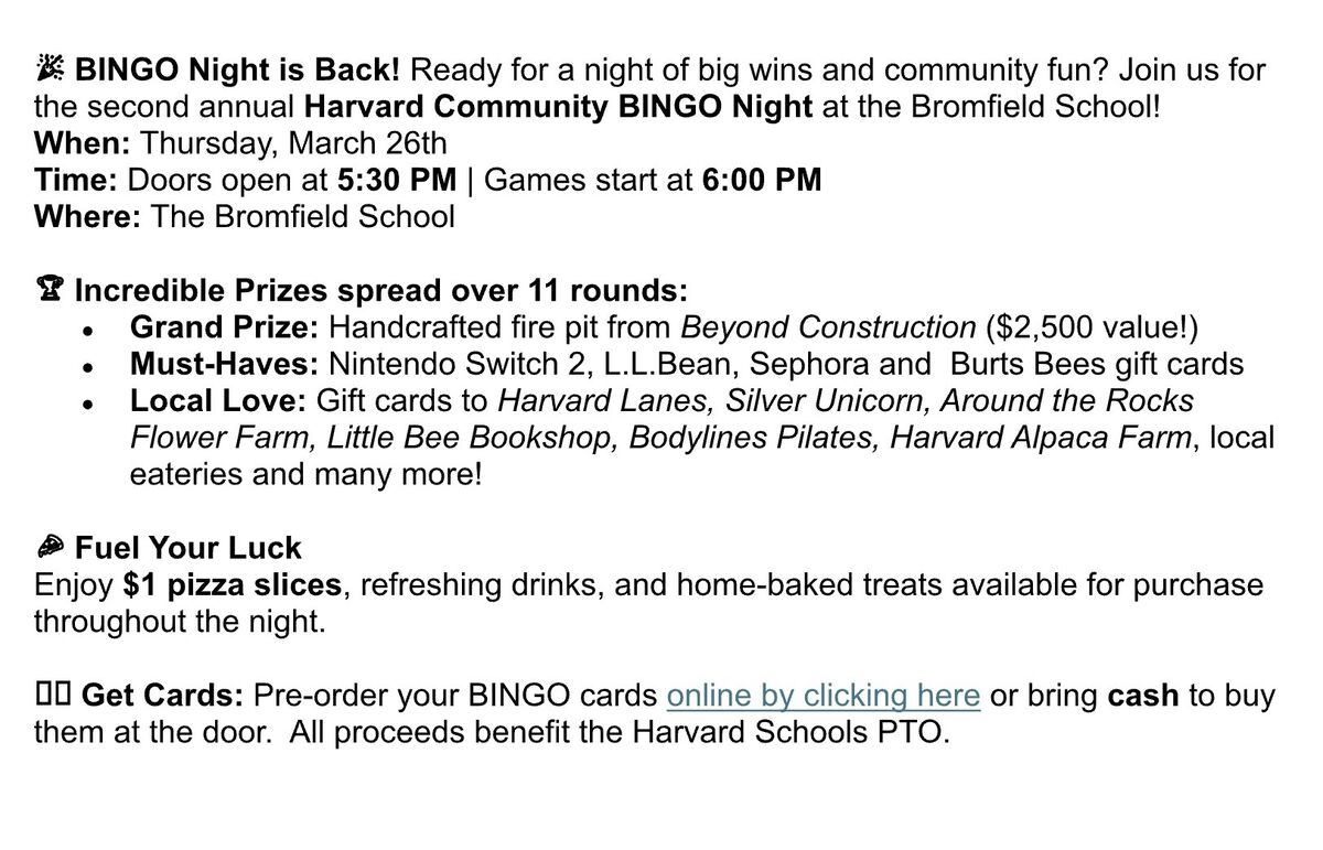 Harvard Public Schools PTO – Annual Spring Soirée Fundraiser (2026)